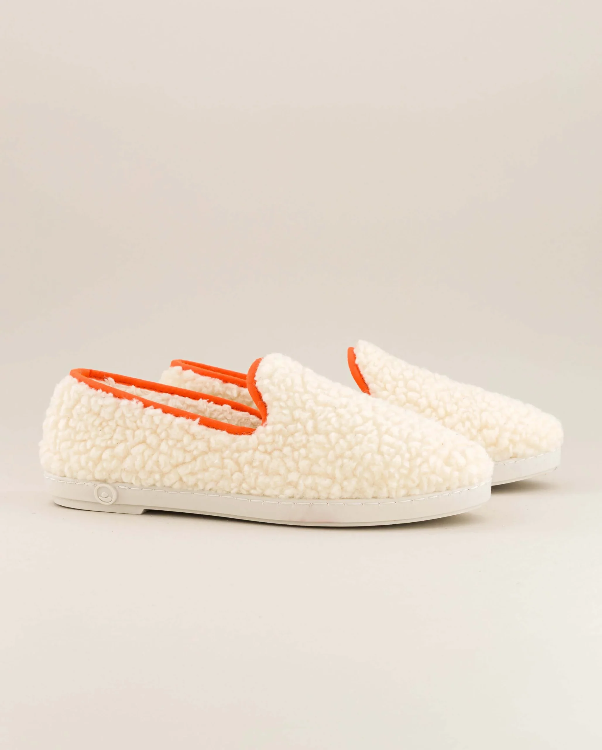 Chausson femme Bruson, bouclette de laine orange