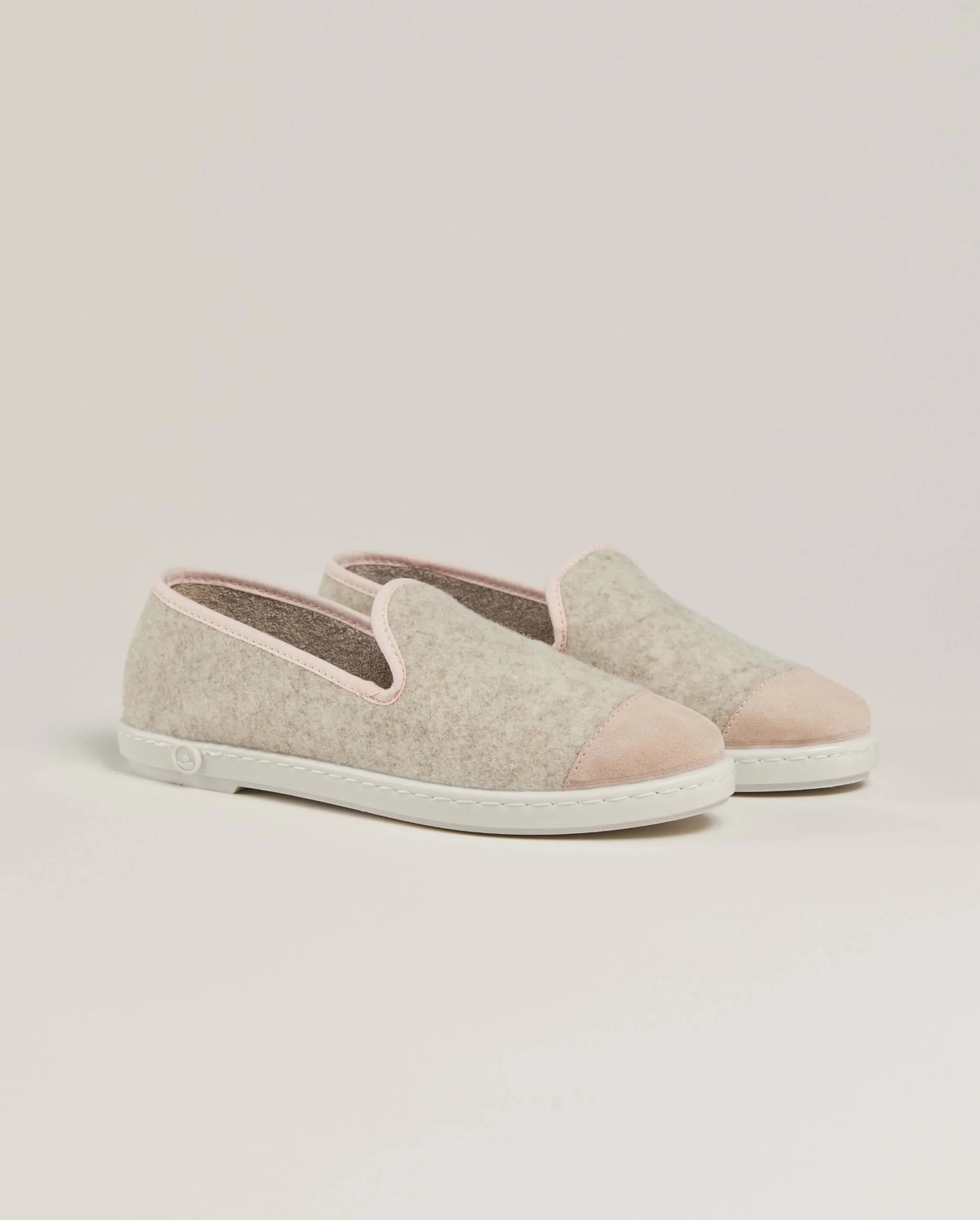 Paire 2 – Chausson femme Bruson, laine beige rose poudré