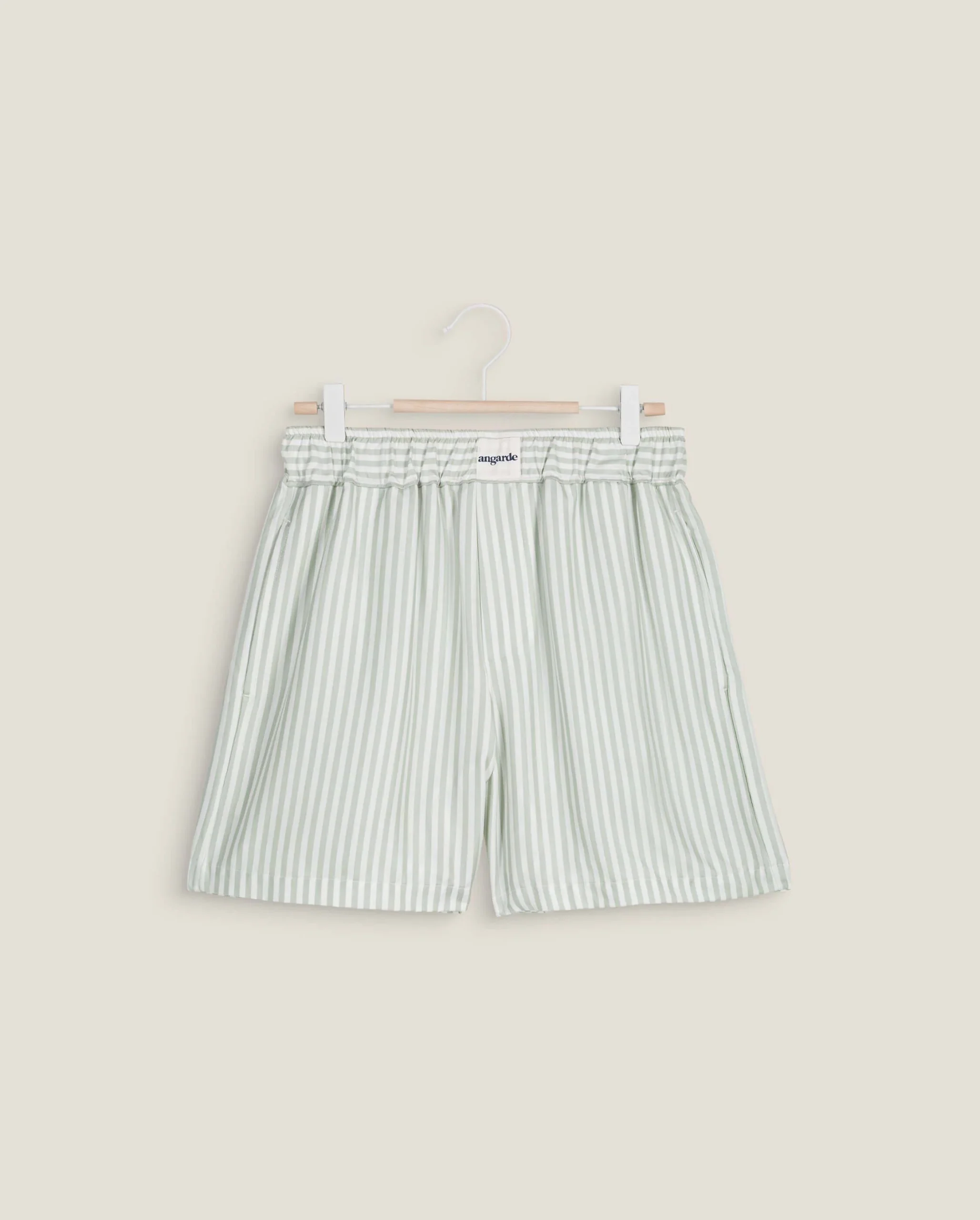 Duo shorts tencel homme / femme, rayures sauge
