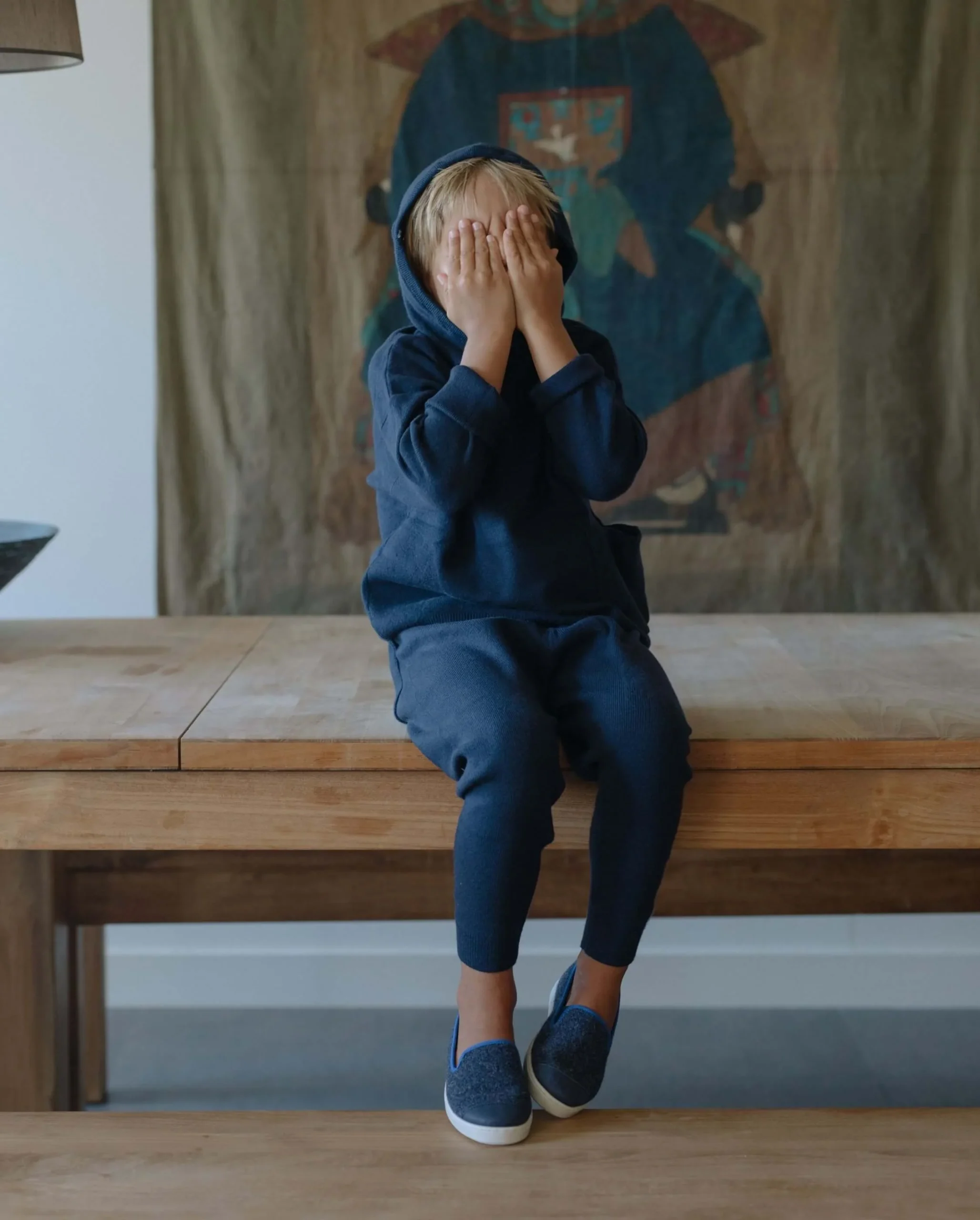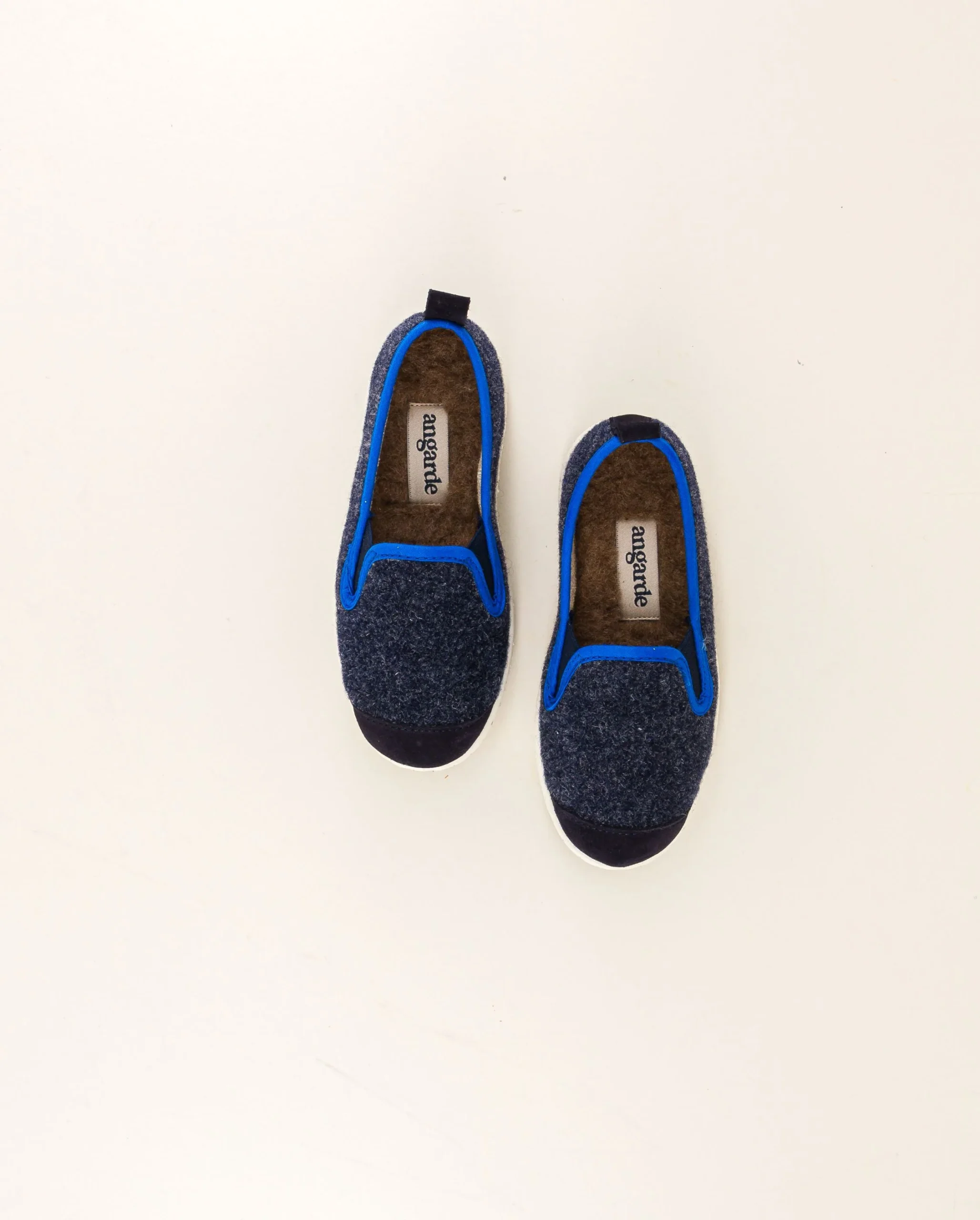 Chausson enfant en laine recyclée marine au passepoil bleu océan