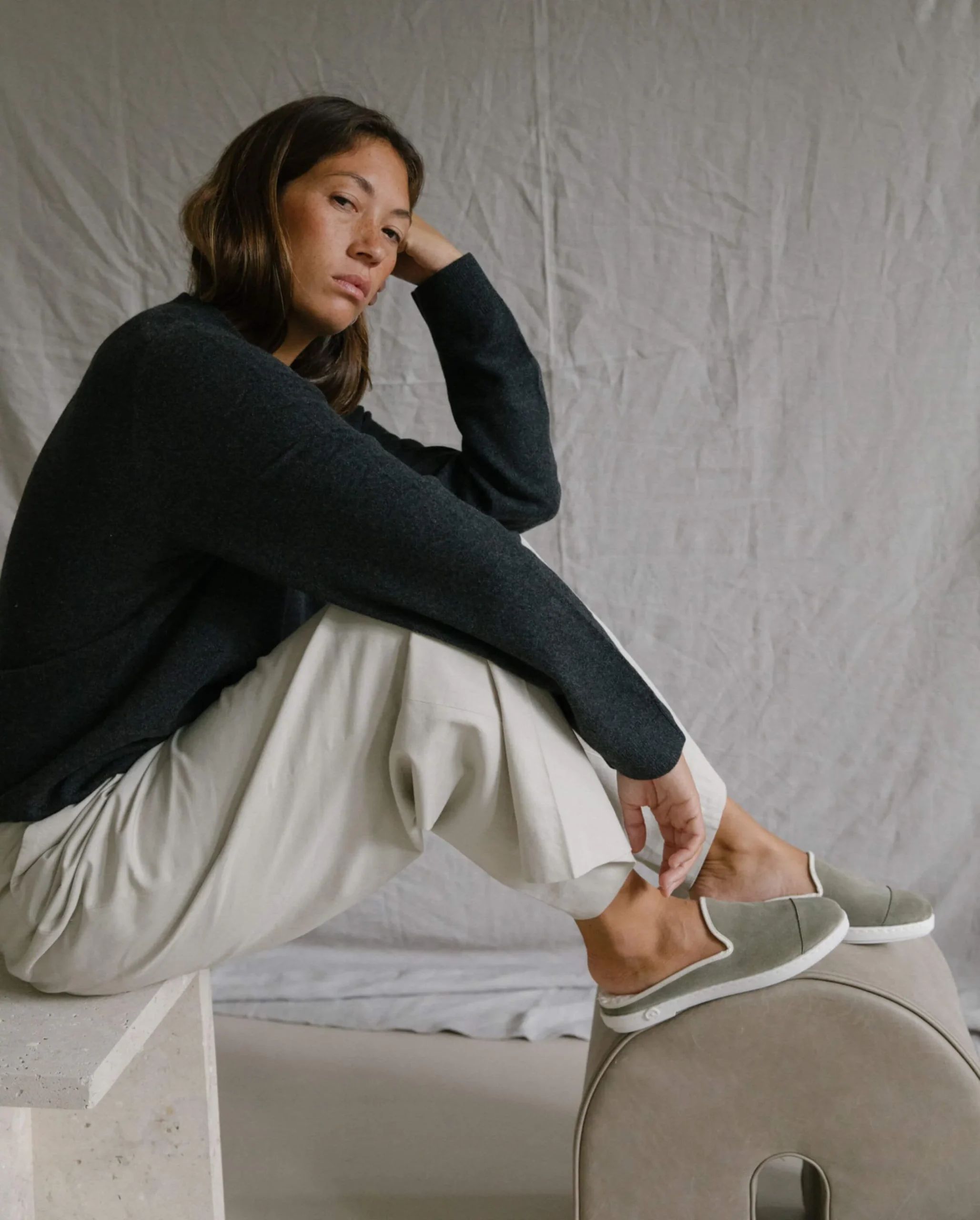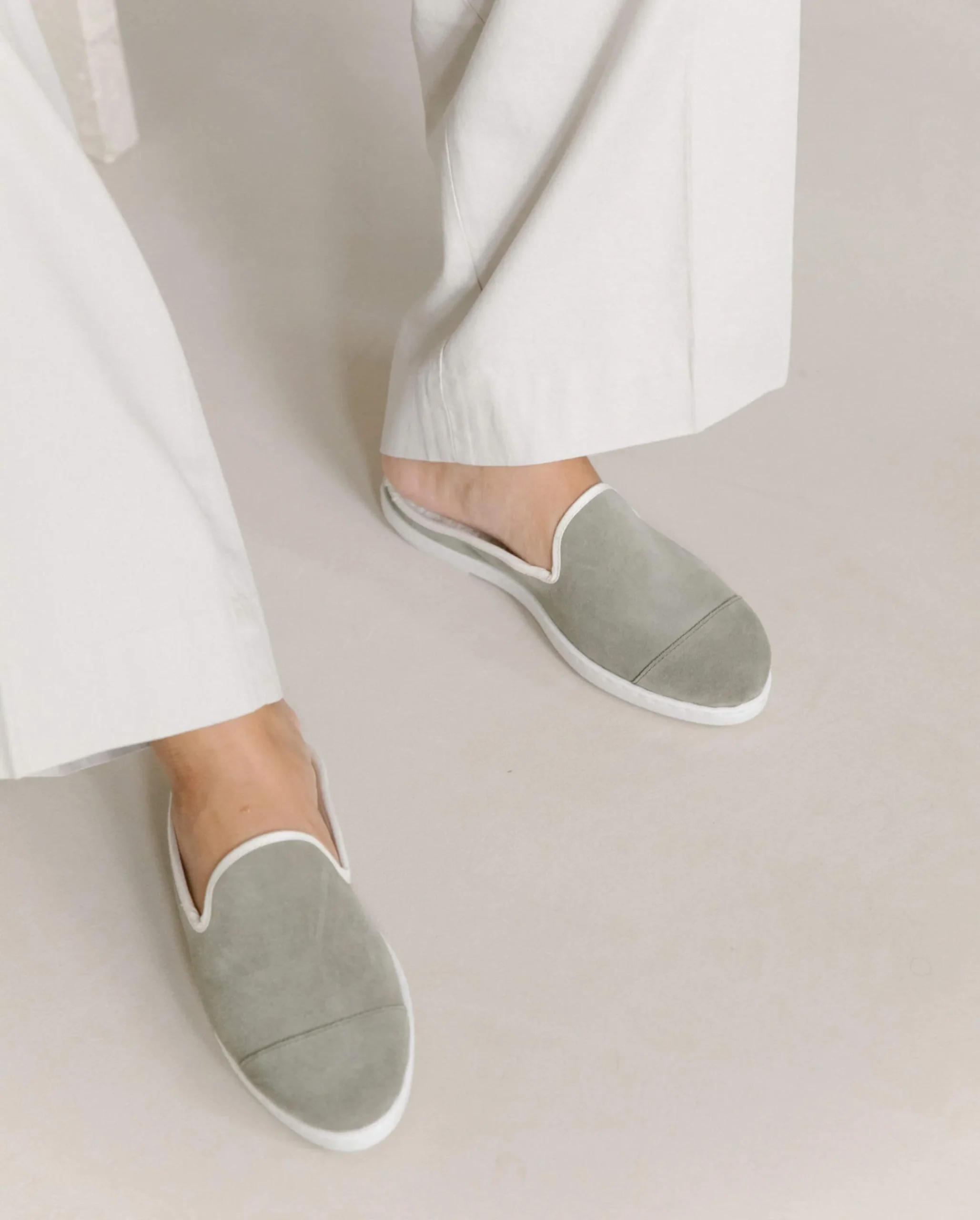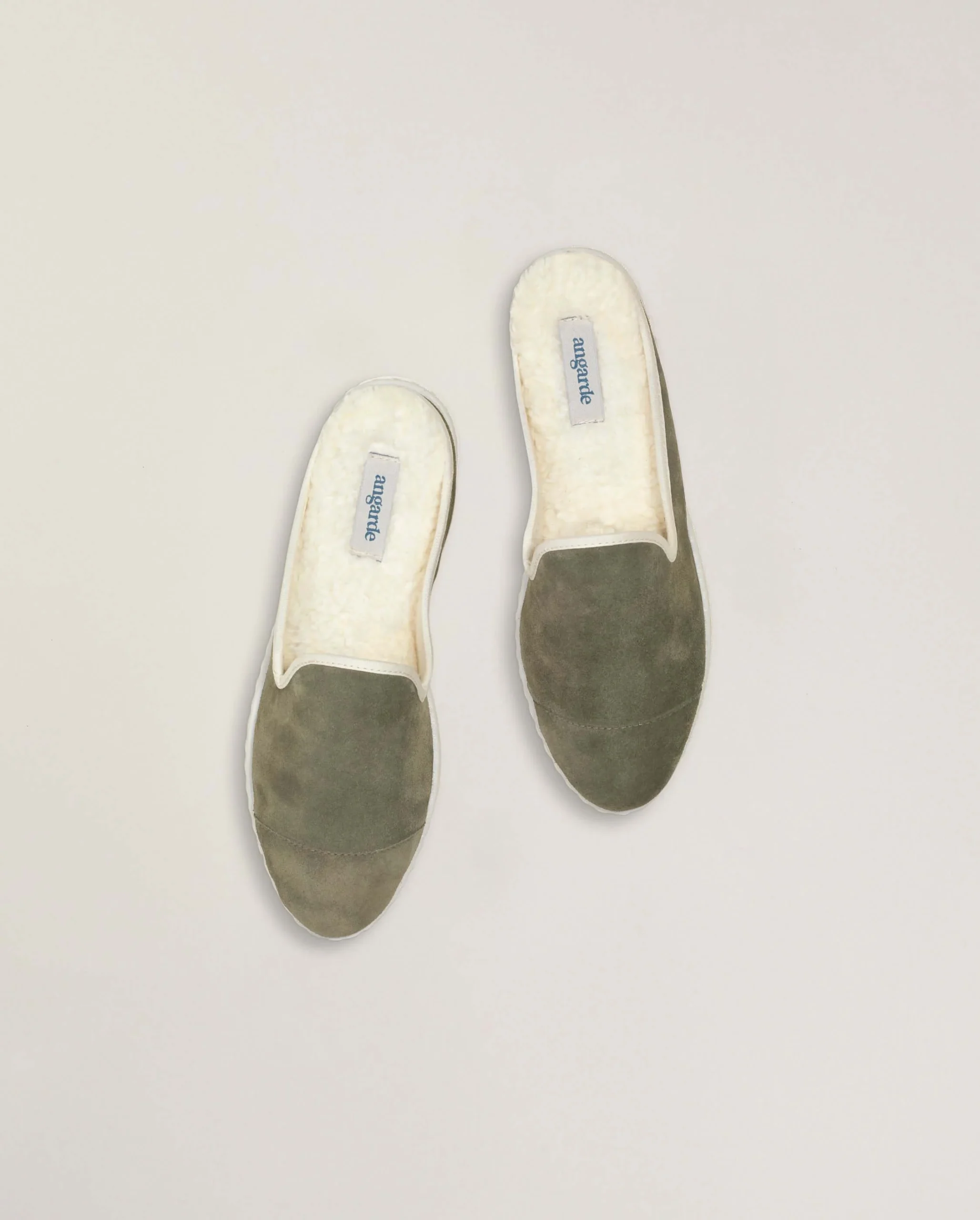 Mule femme en cuir suède italien kaki clair